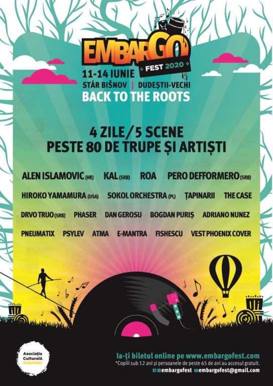 Embargo Fest 2020, aflat la cea de-a treia ediție și considerat cel mai mare eveniment cultural desfășurat în zona rurală de vest, va avea loc în perioada 11 – 14 iunie, în comuna Dudeștii Vechi („Stár Bišnov“– în limba bulgară). Festivalul se va desfășura în acest an sub sloganul „Back to the Roots”, iar pe Main Stage, Green Stage, Electric Base, Dream Stage și Culto-Cort, adică cele 5 scene pregătite de organizatori, vor urca artiști precum: Kal (SRB), ROA, Pero Defformero (SRB), Hiroko Yamamura (SUA), Sokol Orchestra (PL), Țapinarii, Drvo Truo (SRB), Phaser, Dan Gerosu, The Case, Bogdan Puriș, Adriano Nunez, Psy Lev, ATMA, Pneumatix, E-Mantra, Fishescu și Vest Cover Phoenix. De asemenea, în cadrul ediției cu numărul trei festivalierii se vor bucura și de un târg de produse artizanale, bucate tradiționale, stand-up comedy și multe ateliere pentru cei mici.