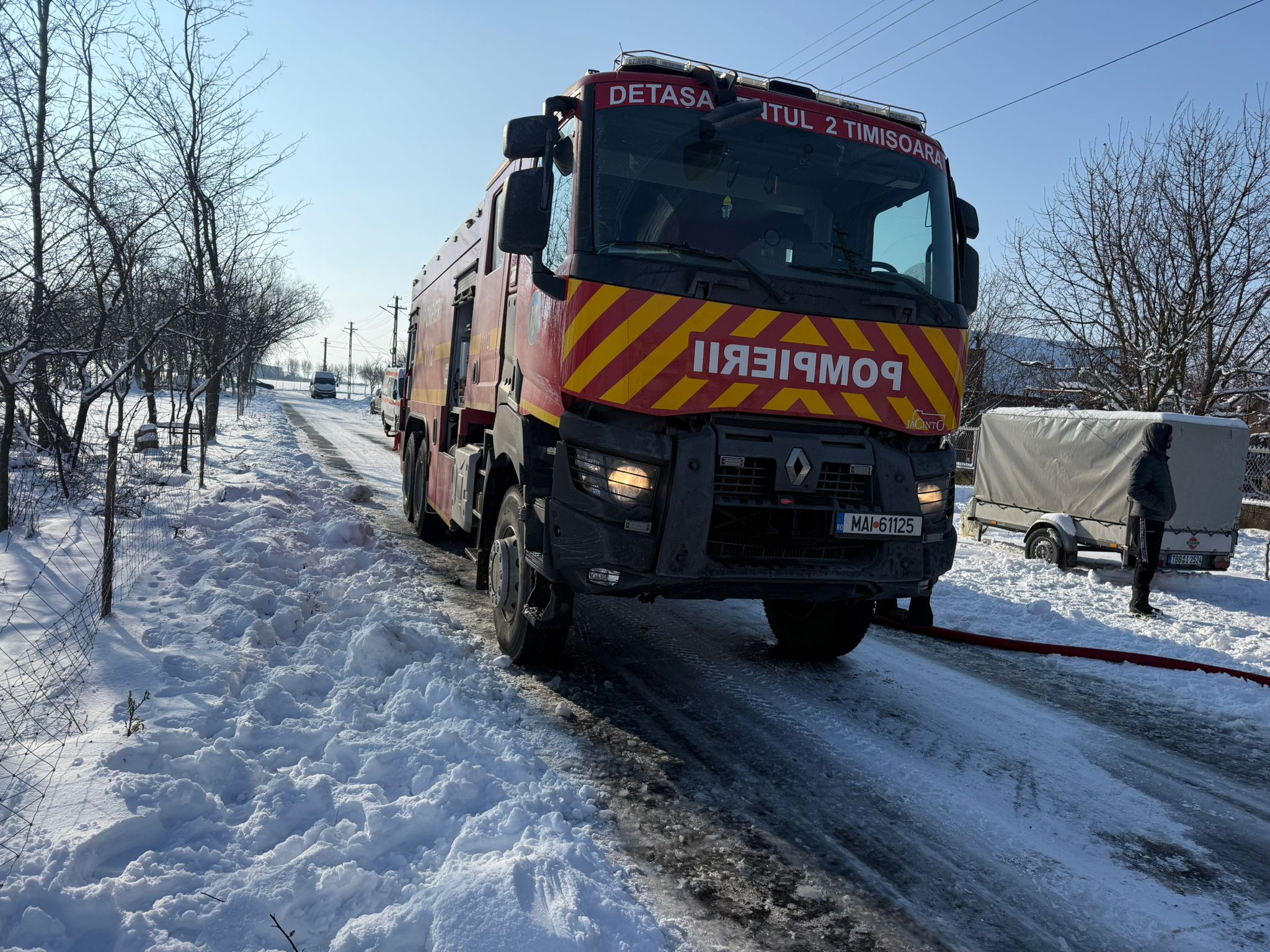 Pompierii au intervenit astăzi la Izvin, unde un incendiu a cuprins o casă și o anexă, pe o suprafață de aproximativ 250 mp.