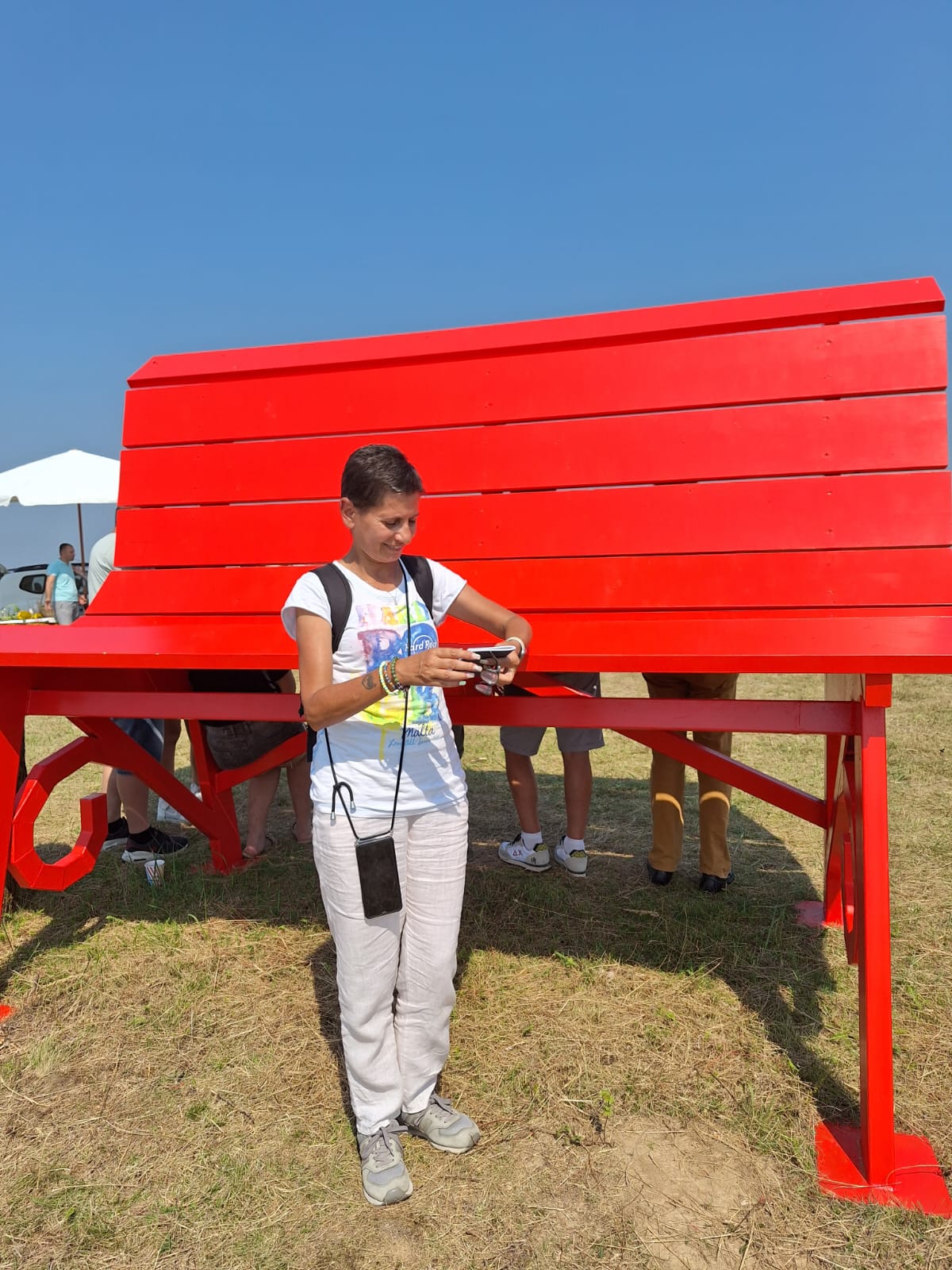 La locul inaugurării în România am întâlnit-o pe Erica, o turistă din Italia, care face turul tuturor băncilor uriașe și care deține astfel un pașaport Big Bench. Este deja la al doilea pașaport, întrucât primul s-a umplut de ștampile. Erica a vizitat 74 din 318 bănci instalate în Europa.