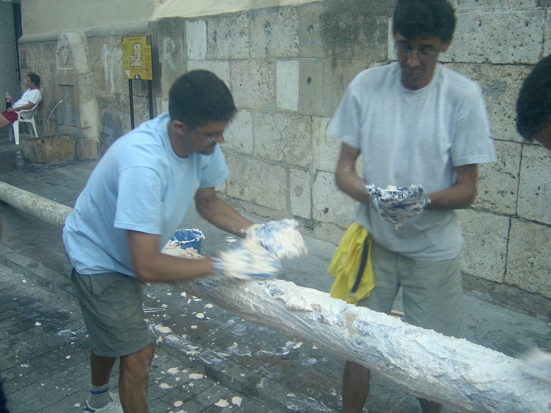 Miercuri dimineața, primul eveniment dinaintea bătăii propriu-zise este „Palo Jabón”: un stâlp lung uns cu grăsime, în vârful căruia se află o bucată de șuncă, pe care participanții trebuie să o facă să cadă. Odată ce șunca a căzut, începe bătaia cu roșii.