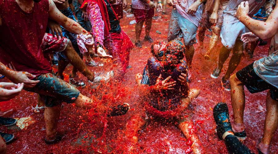 La Tomatina se organizează anual un festival în cadrul căruia, așa cum sugerează numele, participanții aruncă cu roșii unii în alții. Deși orășelul are doar 9.000 de locuitori, se pun la vânzare anual 20.000 de bilete, pentru că evenimentul a prins oarecare faimă. Până în 2013, intrarea se făcea liber, însă din cauză că localnicii nu mai ajungeau să participe și ei, autoritățile locale au impus sistemul de tichetare.