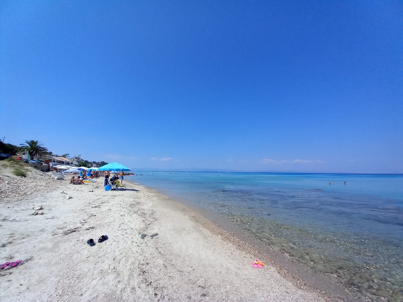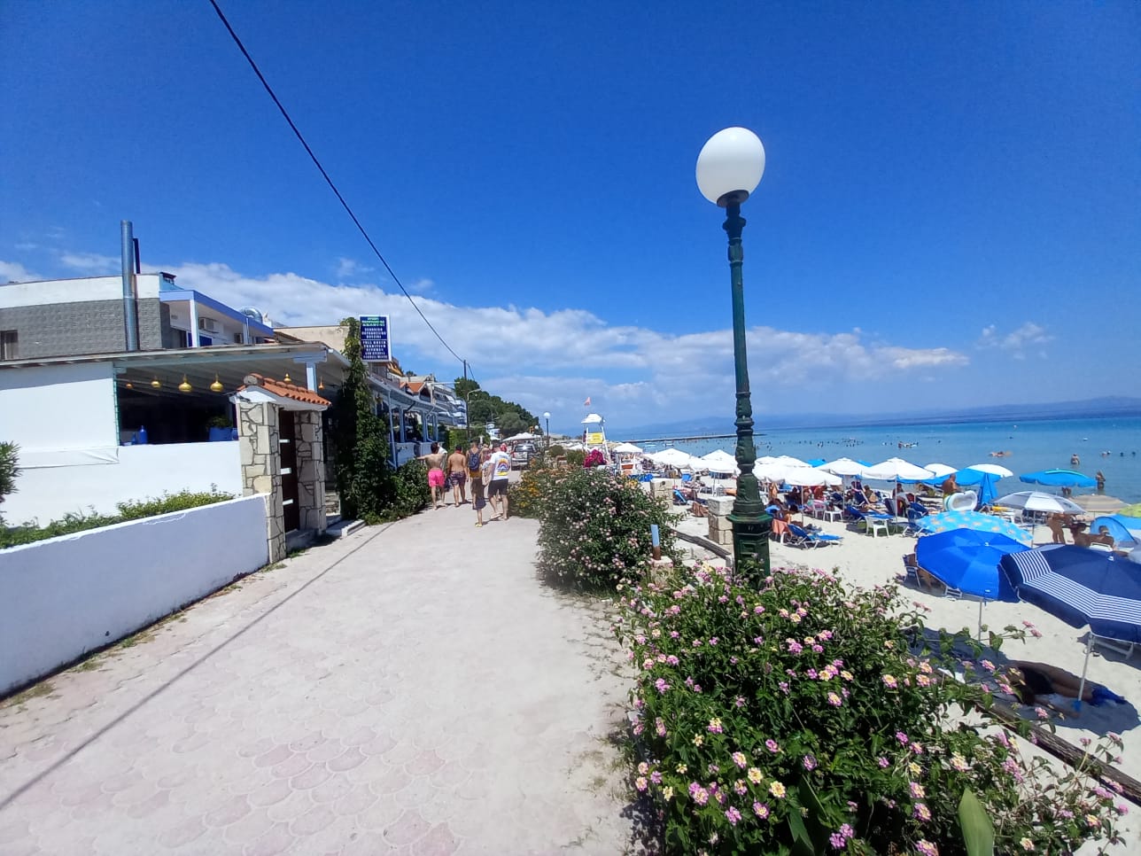 Grecia nu mai este ce a fost..în Hanioti nu am găsit toaleta sau dus pe plaja!!!șezlonguri pentru 2 persoane costa 15 euro bani de care nu iți oferă absolut nimic!!!Nu am avut un bar pentru o cafea pe plaja…dezamagit!