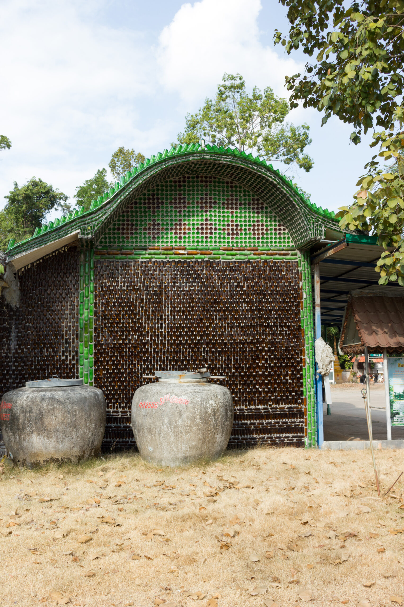 În total, au fost folosite aproximativ 1,5 milioane de sticle de bere, de unde și numele alternativ de „Wat Lan Kuad” („Templul de un milion de sticle”). Cele mai multe provin de la două mărci populare în Thailanda: Heineken, cu sticla verde, și Chang, cu sticla maro. Astfel, verdele și maroul, combinate cu cimentul alb, dau naștere unor jocuri cromatice spectaculoase.