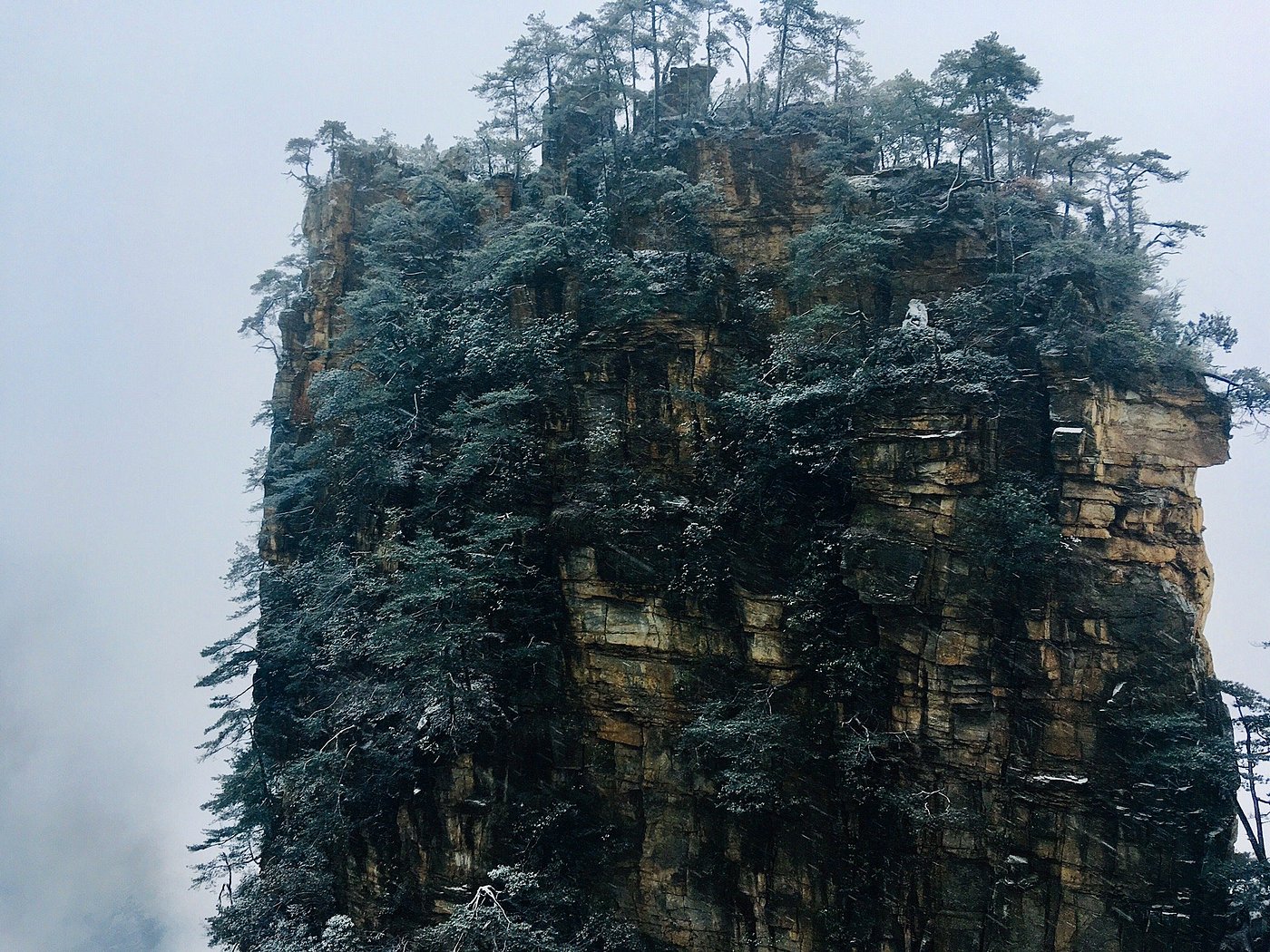 Peisajul este dominat de peste 3.000 de coloane de piatră, formate în urmă cu aproximativ 380 de milioane de ani, prin procese geologice complexe. Calcarul, erodat de ploi și vânt, a fost sculptat lent până când au rămas doar pilonii uriași care par să sfideze gravitația. Între stânci se formează văi adânci și pâraie care curg către râurile din bazinul Yangtze.