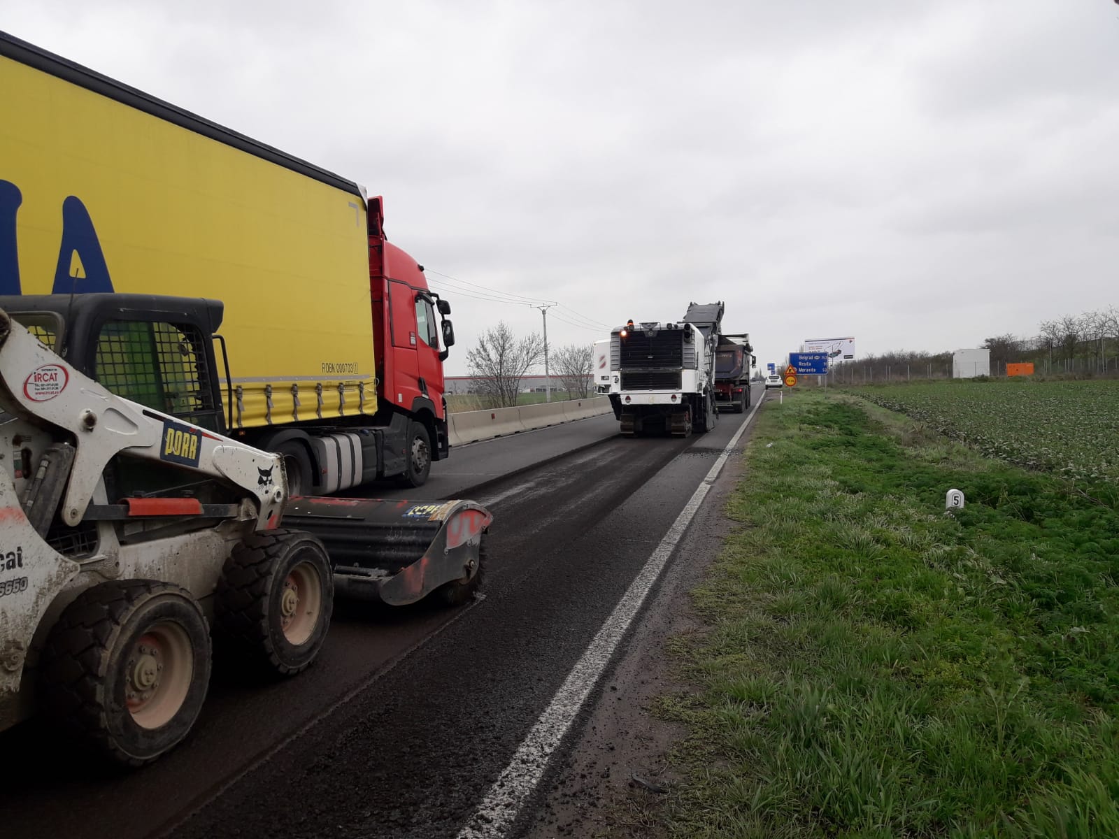 Astfel, antreprenorul PORR Construct a început lucrările de frezare și așternere a covorului asfaltic pe DN 59 între comunele Șag și Voiteg din județul Timiș.