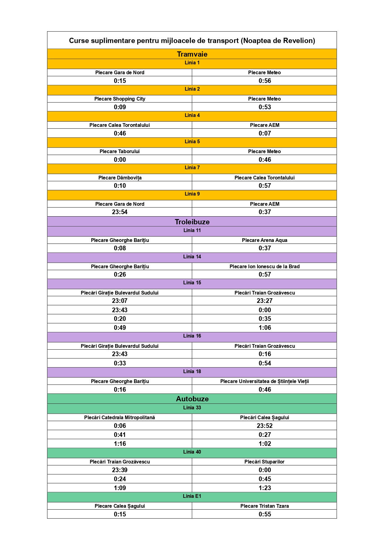 Măsura vine în sprijinul timișorenilor care participă la evenimentele de Revelion și care se vor întoarce acasă după miezul nopții, asigurând transport public sigur și accesibil.